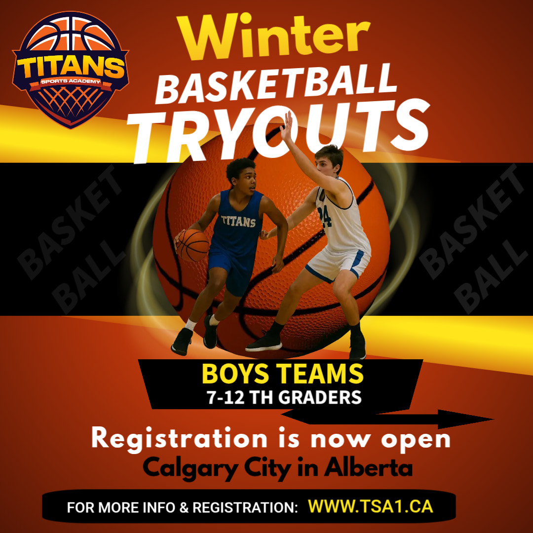 Get ready, Calgary! Titans Sports Academy is opening 2026 Basketball Tryouts for boys in Grades 6–12 across Winter, Spring, and Summer seasons. This is your opportunity to step into a high-performance program built to shape disciplined athletes, strong leaders, and future champions.